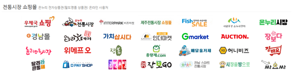 :우체국 전통시장, 온누리시장, 제주전통시장쇼핑몰, 사람풍경 온누리장터, 경남몰, 놀러와요 시장, 배달올거제 등