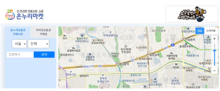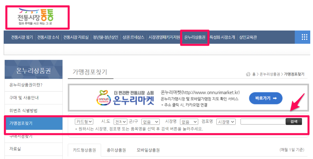 전통시장통통 홈페이지 ▶ 온누리상품권 ▶ 가맹점포찾기