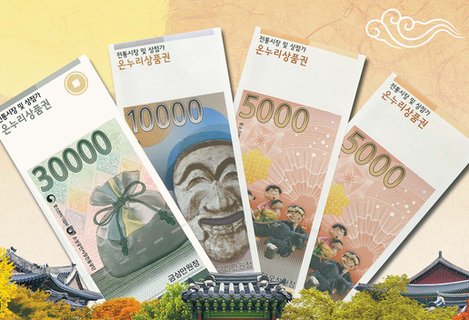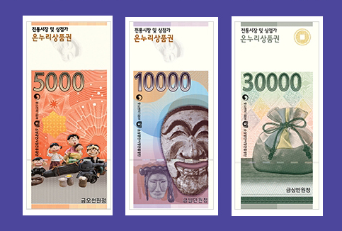 - 전통시장에서 온누리상품권을 사용하는 경우, 상품권 금액의 60% 이상의 금액을 사용해야 잔돈을 거슬러 받을 수 있습니다.