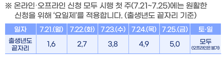 중복 신청 금지 동일인은 한 번만 신청할 수 있으며, 중복 신청 시 후순위 신청분은 자동으로 취소됩니다.