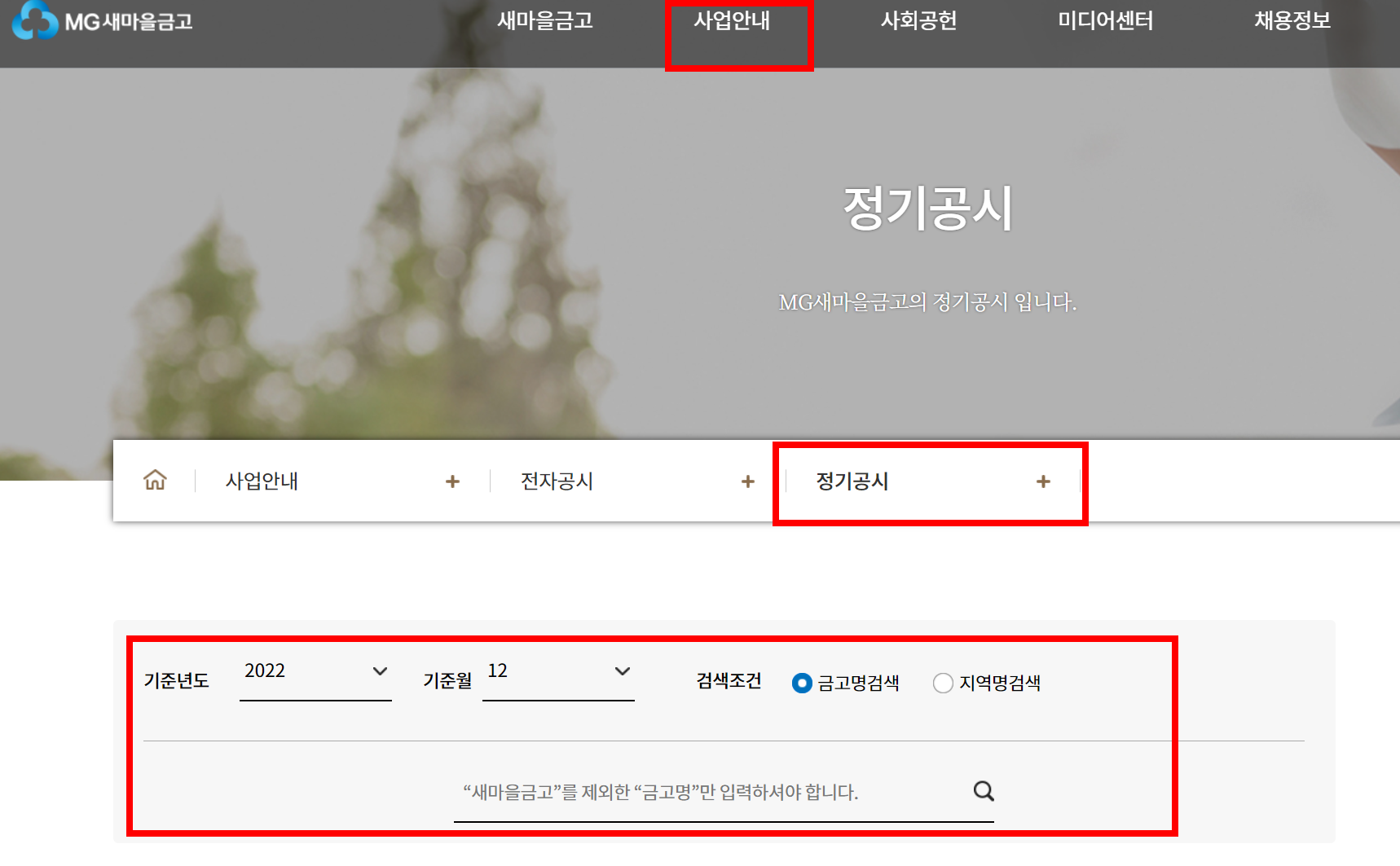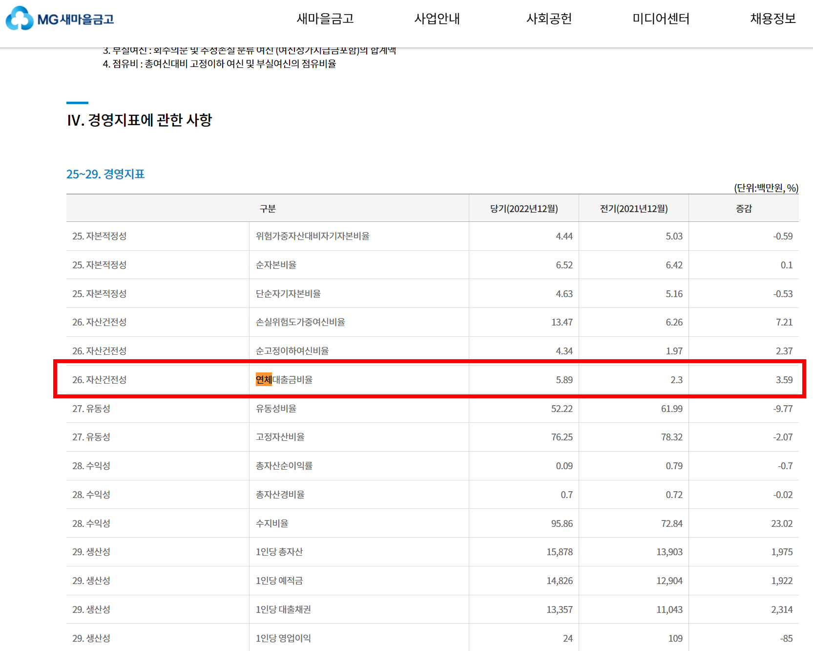 새마을금고 홈페이지 ▶ 사업안내 ▶ 정기공시 ▶ 새마을금고명입력 ▶ 정기공시 내용 중 26.연체대출금비율 확인