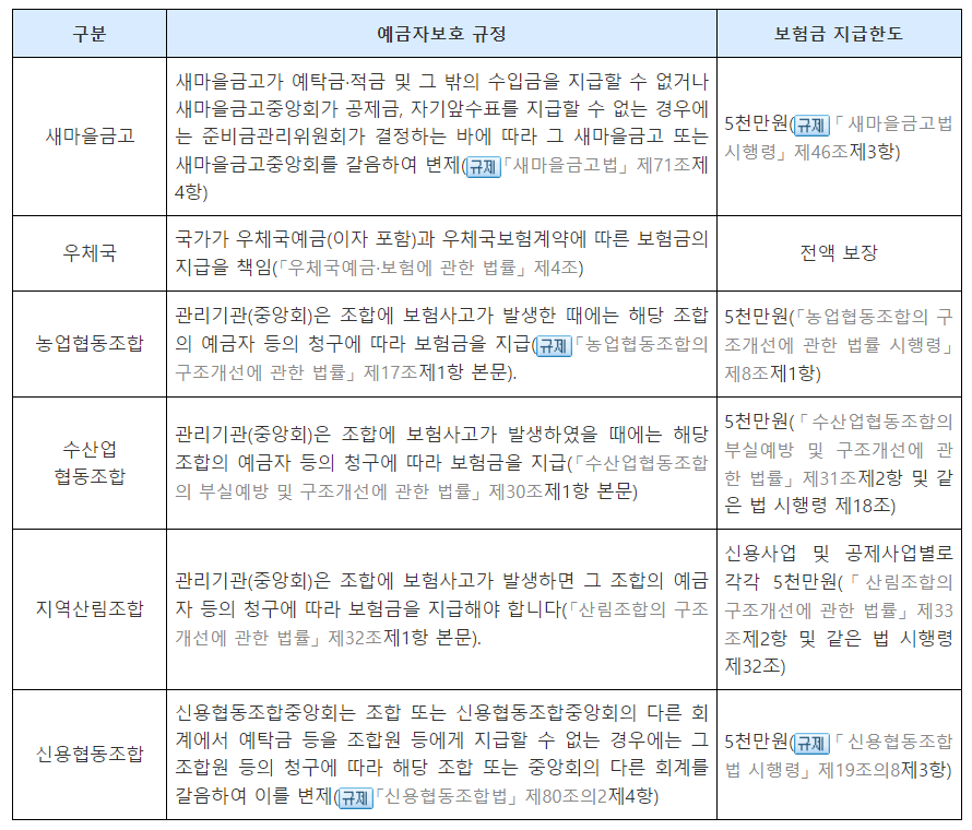 5.우체국 및 다른 지역조합 예금자보호