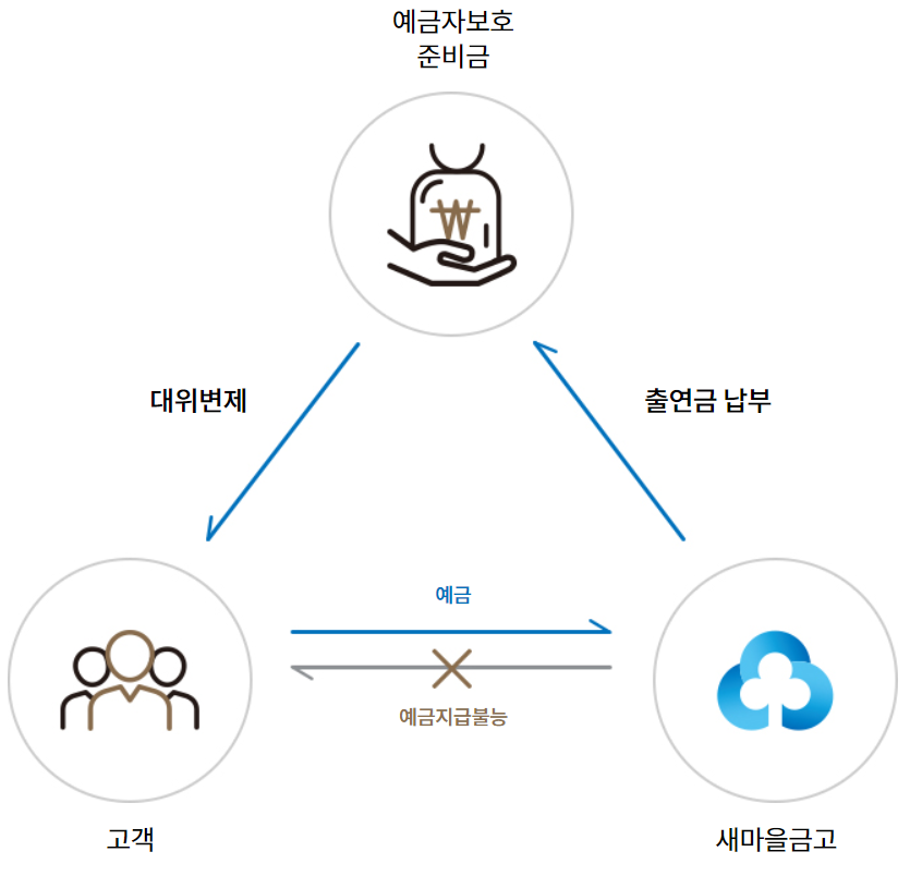 새마을금고의 예금자보호제도는 새마을금고부도 발생 시, 영업정지가 되고 고객의 예금을 지급할 수 없는 상황이 처했을 때 고객의 예금을 보호하기 위해 새마을금고중앙회에 설치되고 운영되는 예금자보호준비금을 통해 운영되는 제도입니다.