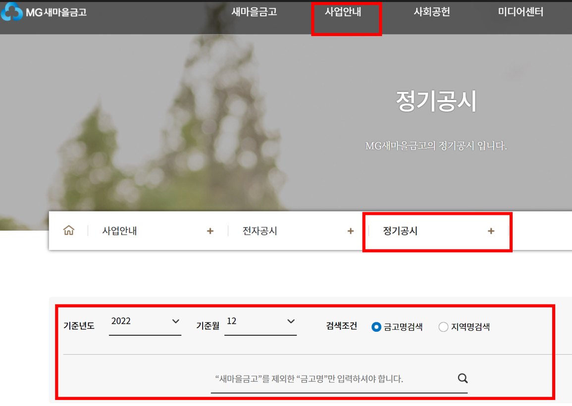 이렇게 해보시기 바랍니다. 새마을금고 홈페이지에서는 정기공시를 통해 새마을금고의 경영실태평가등급을 확인하실 수 있습니다.