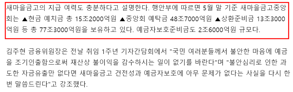 그럼에도 불구하고 새마을금고에 소중한 자산을 맡긴 개인은 동요할 수 밖에 없는데요, 다음의 4가지 확인사항을 기억해두시고 확인·기억해 두셨다가 앞으로 새마을금고부도위기설에 대처하시기 바랍니다.